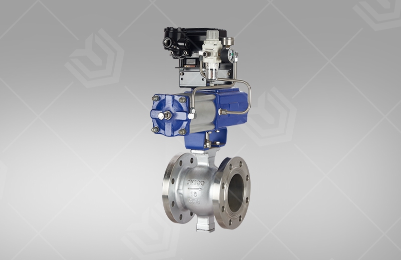 V型球阀的密封型式有软密封、硬密封两种,执行机构有气动、电动等,配有定位器、电磁阀等附件,可以实现比例调节。